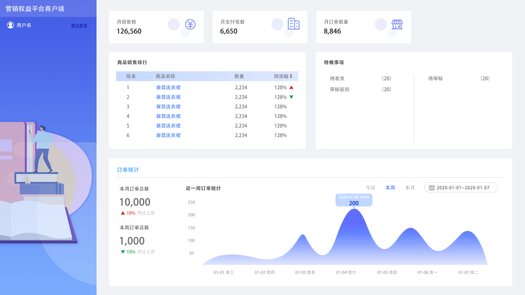①用户端权益统一展示与应用:活动、订单、优惠券、积分统一展示;