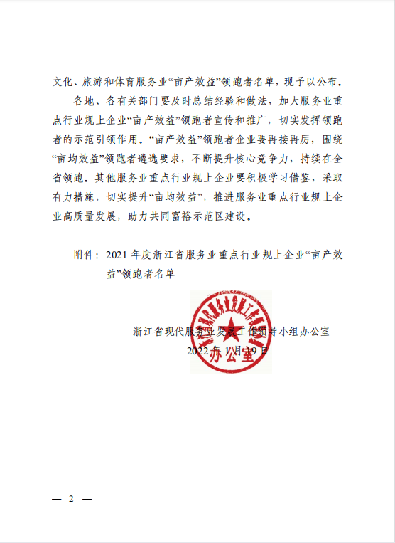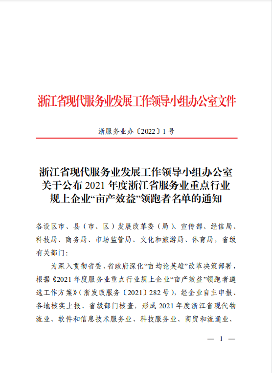 1、2021年度浙江省服务业重点行业规上企业”亩产效益“领跑者