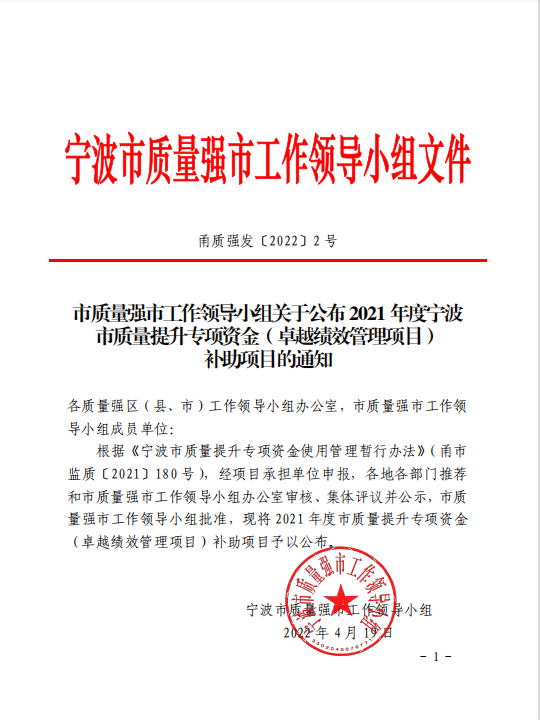 3、2021 年度宁波市质量提升专项资金(卓越绩效管理项目)补助项目