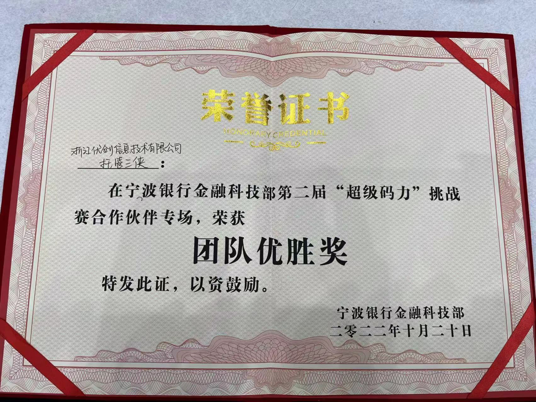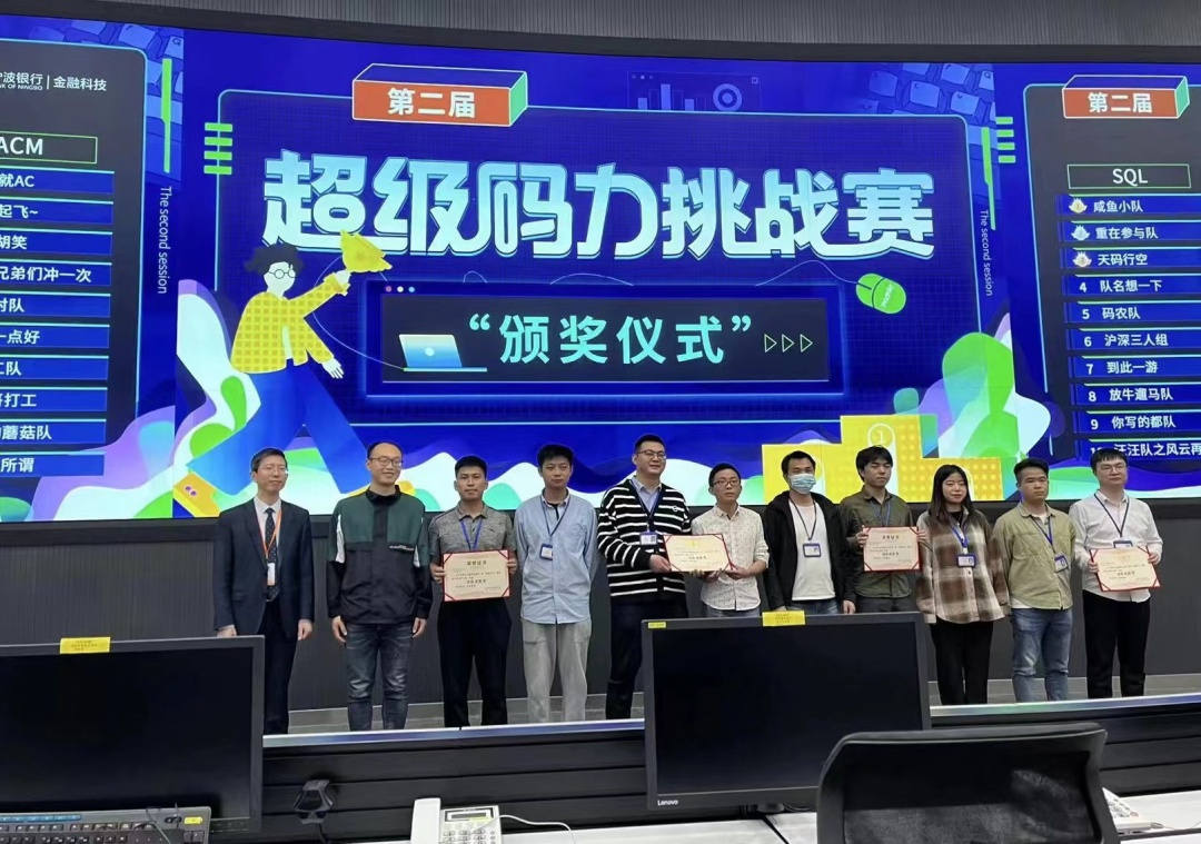 我司项目成员组成“托管三侠”战队参加的“ 宁波银行超级码力 ”编程大赛,从海选到最终的56组角逐。最终杀出重围荣获“团队优胜奖”!