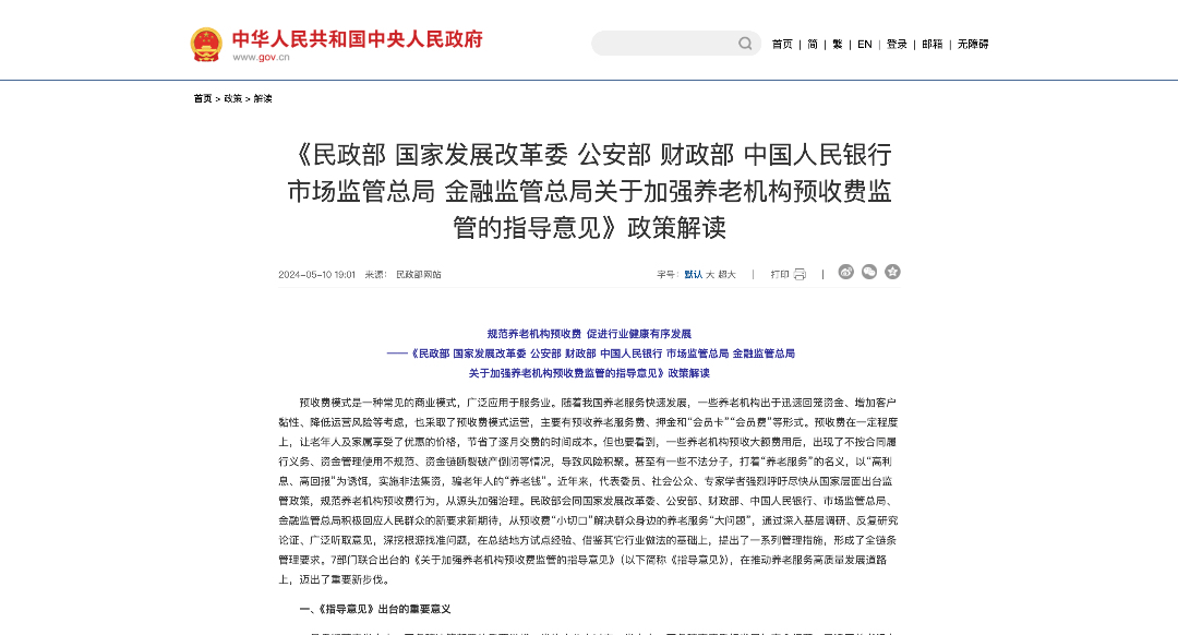 5月10日,民政部会同国家发展改革委、公安部、财政部、中国人民银行、市场监管总局、金融监管总局联合出台了《关于加强养老机构预收费监管的指导意见》,旨在规范养老机构的预收费行为,这一政策的颁布,标志着政府对养老服务行业提出了更加规范化、系统化的要求,更为养老服务行业注入了创新动力,激发了新质生产力的蓬勃发展! (《关于加强养老机构预收费监管的指导意见》政策) 在此政策的推动下,浙江优创已推出的“养老机构资金监管系统”,正逢其时地满足了行业对资金管理的需求,针对行业中存在的虚报费用、押金退还手续缓慢、资金监管力度不足等问题提供了切实有效的解决方案。 优创“养老机构资金监管系统”不仅响应了新政对资金透明度和安全性的要求,而且充分发挥科技强行、数据大行优势,建立安全、透明、高效的资金管理解决方案来保护用户的利益和提高养老服务质量,提升金融服务的体系化、生态化、数字化水平。 (系统架构图) 该系统整合了养老机构的所有数据和信息,包括养老机构管理、资金缴纳、流水记录等,能够实时监控和分析资金动态,以确保资金安全和合规性。此外,该系统还具备多项智能功能,例如机构黑名单机制、预警提示等,可有效降低错误率和风险发生率。 并从资金管理、业务流程、监管等角度提供了有效的解决方案: 借助银行力量建立相关资金监管账户,从缴纳开始即进入监管流程,从资金使用需申报审核,到资金划转为定向支付等,做到资金来向可查询、去向可追溯。 优化线上相关业务流程,使得业务的办理、资金的缴存使用等场景全面规范化,做到业务和资金的高效流转。 建立资金管理制度,资金流向公开透明,机构可随时查看资金缴存进度,用户也可随时查看资金使用等账目情况。 充分利用互联网大数据等技术,使监管实现全要素、全流程监管的同时,能够精准判断风险情况,从而实现有效的政策制定。 未来人口老龄化加剧,养老机构数量和规模将日益增长,对其资金流向进行有效监管将成为保障老年人权益和促进行业健康发展的关键因素之一。 在此背景下,养老机构资金监管系统的需求将日益增加,优创将持续优化资金监管技术,确保系统满足政策要求和市场需求,致力于成为养老服务行业规范化管理的重要推手。 审核|常 乐 编辑|朱慧凯 今日头条|浙江优创信息技术 公司官网|http://www.cn-unitech.com/
